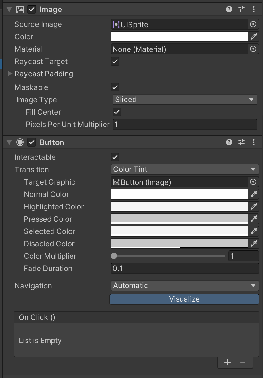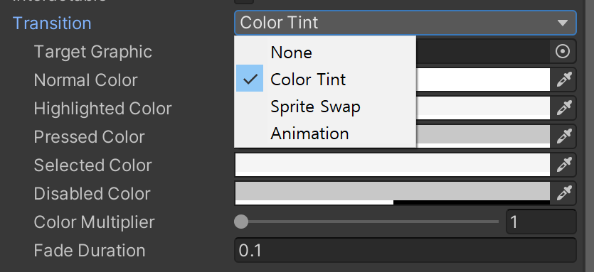 Interactable : 상호작용 여부를 결정할 수 있다Transition : 상호작용에 따라 변화하는 방법을 설정할 수 있다public class ImageTest : MonoBehaviour