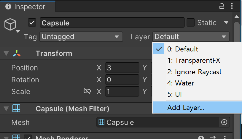 Layer Mask태그. 특정 그룹들 간의 처리를 한다면 레이어