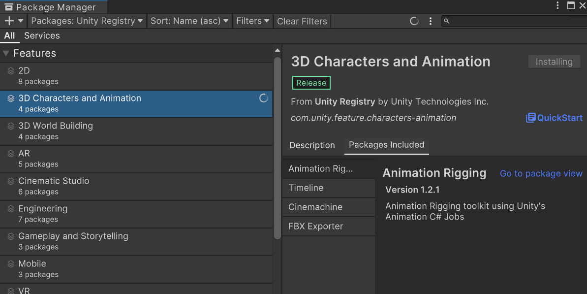 캐릭터와 애니메이션이 쓰일 예정이라 해당 패키지 추가. Cinemachine, Tim eline이 포함되어 있다.