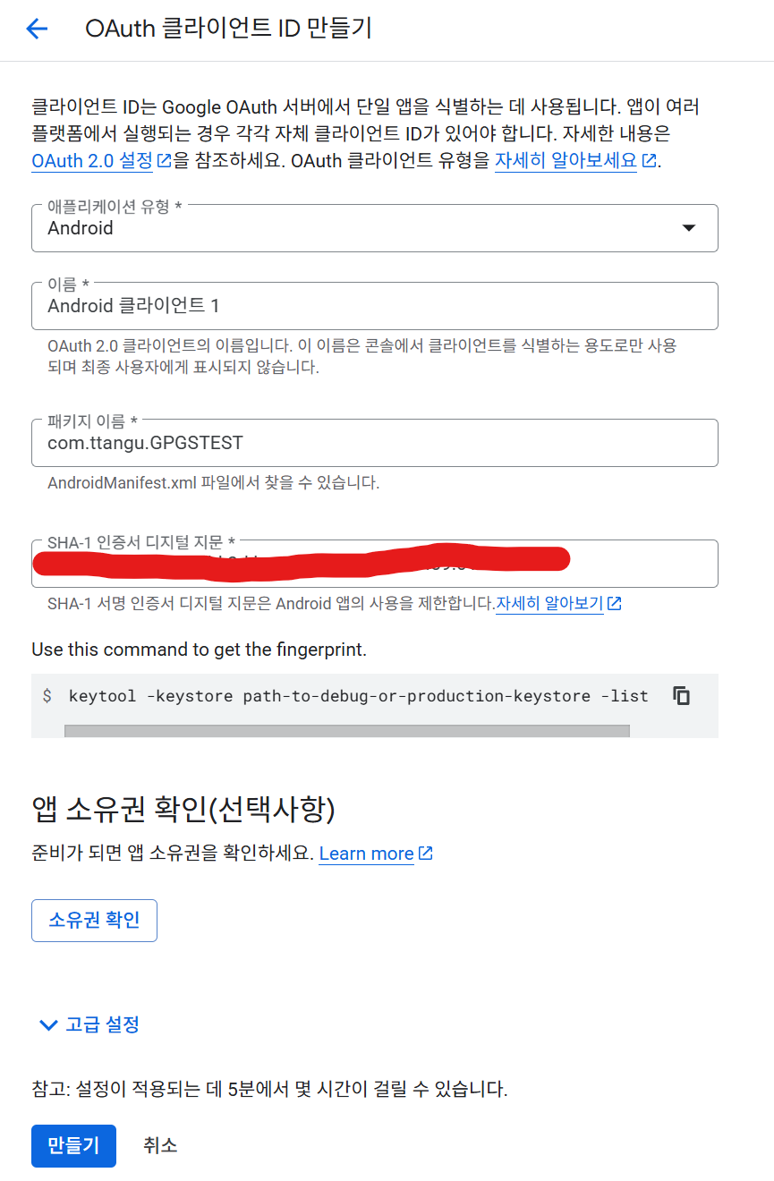 안드로이드 인증 정보도 추가한다. OAuth 클라이언트를 Android 용으로 또 만들어줘야 한다.