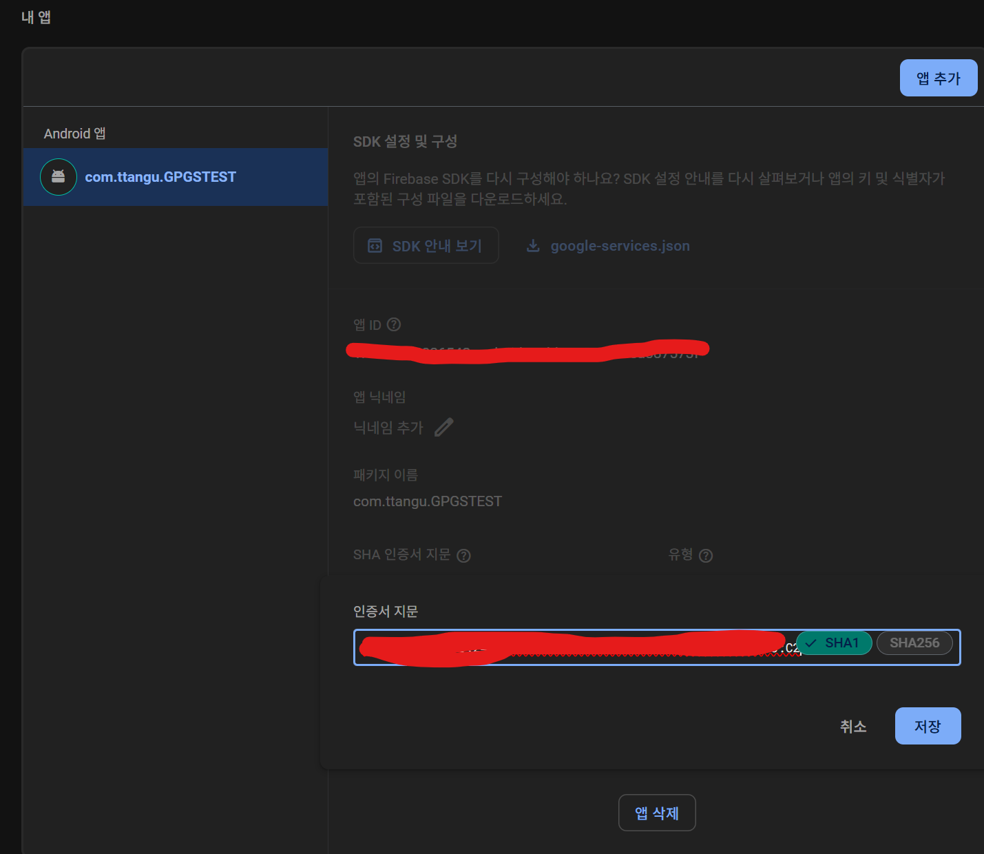 키스토어로 생성된 인증을 SHA-1 값을 추출해서 파이어베이스 프로젝트에 추가해야 한다.