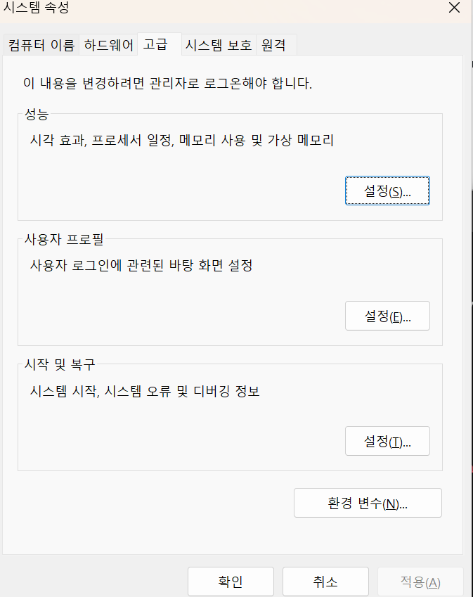 환경 변수를 통해 경로를 설정해줘야 한다.