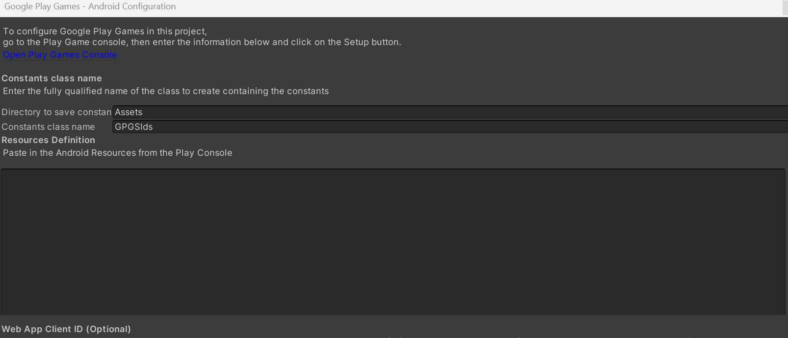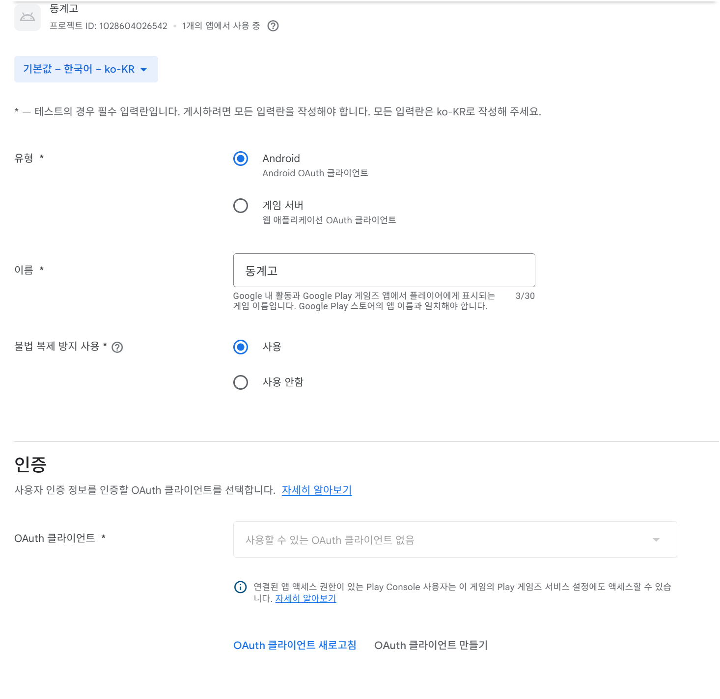 플레이 게임즈는 위와 같은 것을 요구한다. 여기서 클라이언트 ID는 구글 플레이 콘솔의 ID이다.