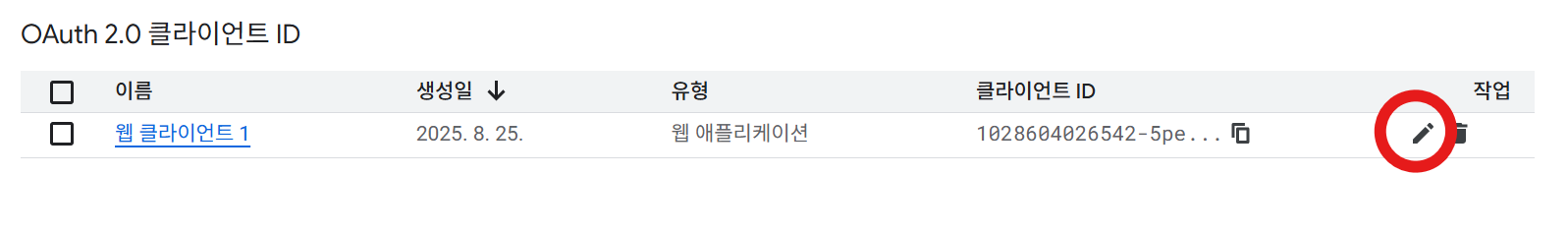 만들었으니 이제 다시 콘솔로 돌아간다. OAuth 클라이언트를 선택 해주고, 변경 사항을 저장한다.