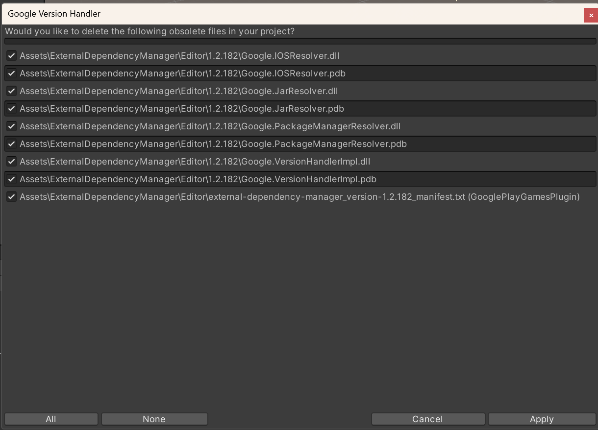 구글 버전 핸들러가 알아서 파일 체크 해준다. Apply하자.