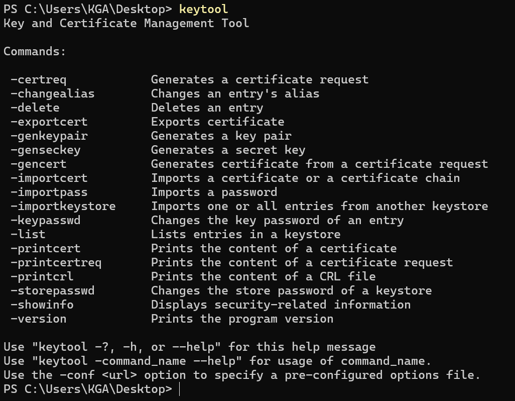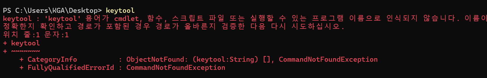 해당 Keytool을 사용하던지 JDK를 직접 설치하도록 한다.