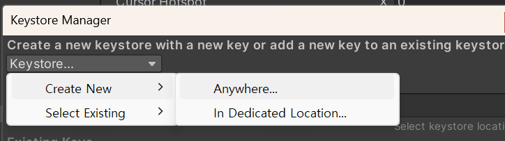 모든 안드로이드 앱의 경우 키스토어를 설정해줘야 한다.
