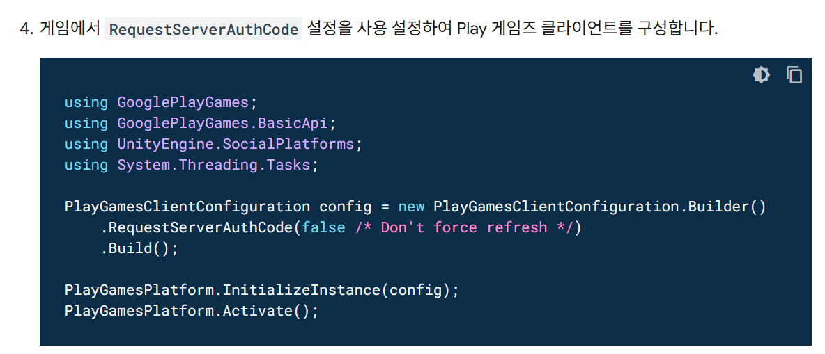 가이드가 파이어베이스 측에만 있는 것이 아니라, 플레이 게임즈 측에도 따로 있다.
