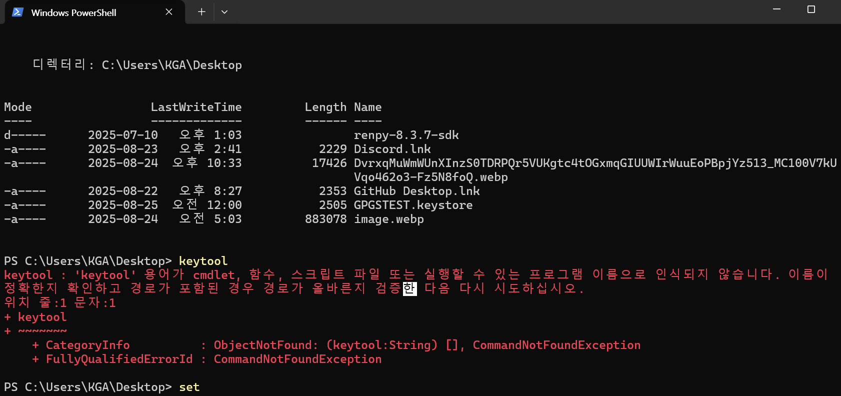 터미널에서 바로 keytool을 입력했을 때, 아래의 설치 과정은 생략한다.