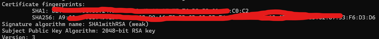 입력하고 나면 위와 같이 키가 나온다. SHA1, SHA256 둘 다 키로 사용할 수 있다. SHA1을 긁어서 아래 사진과 같이 입력한다.
