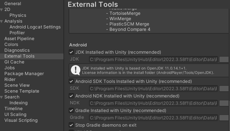 왜 keytool 명령어가 안됐냐면, 유니티 전용 jdk를 다운 받기 때문에 그런것이기도 하다. 심지어 유니티의 에디터 버전별로 다시 다운 받는다.