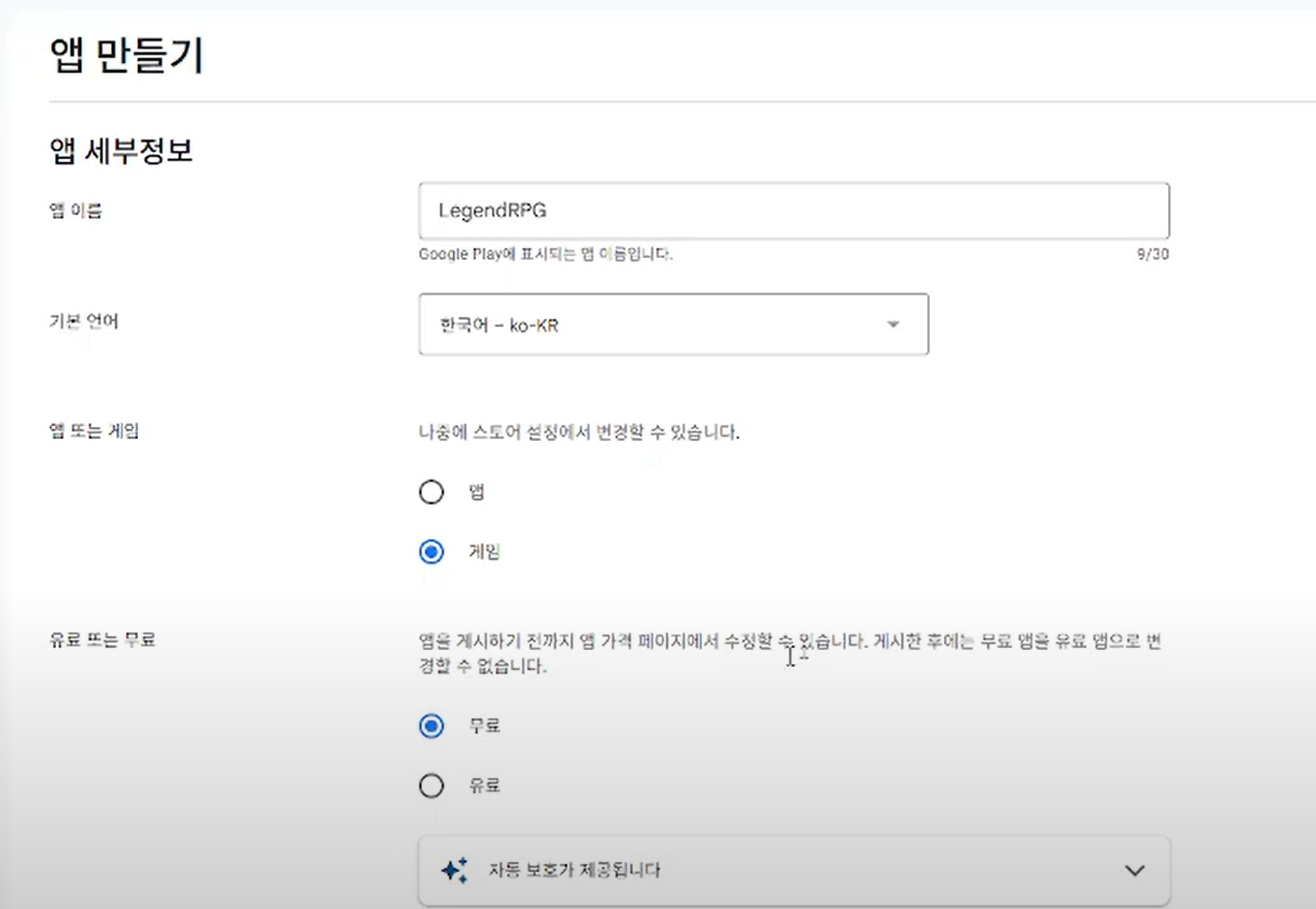출시되는 앱을 만든다. 해당되는 정보들을 입력하고 생성한다.