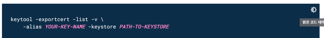 keytool -list -keystore <키스토어 전체 경로.keystore> -v