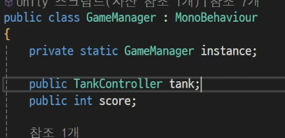 GameManager 스크립트에서 인스턴스의 프로퍼티를 설정한다Tank 스크립트에 아래와 같이 추가한다shooter.Fire();