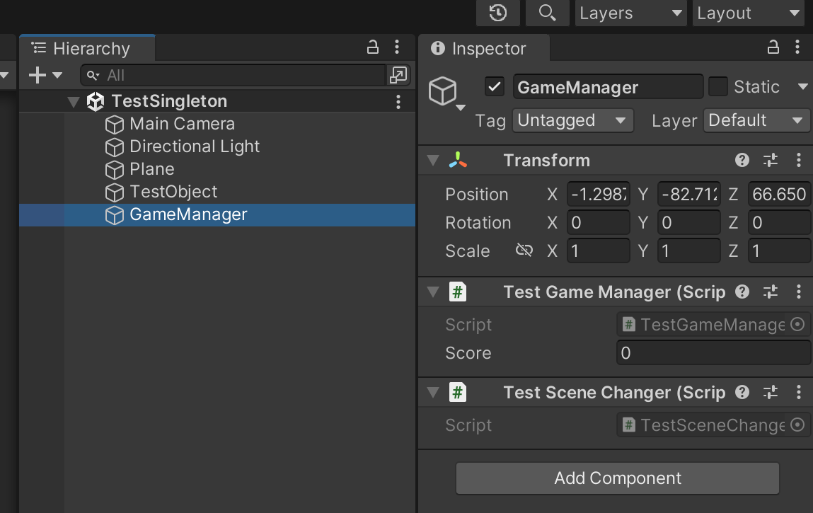 SingletonBehaviour 를 상속받아서 간략화 할 수 있다public class TestGameManager : TestSingletonBehaviour<TestGameManager>