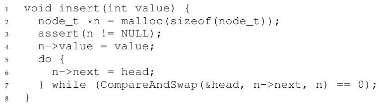 이걸 활용하여 값을 원자 단위로 증가시키는 함수를 선언할 수 있는데, lock을 활용하는 대신 값을 갱신할 때까지 반복적으로 CompareAndSwap 을 시도한다.