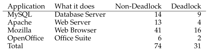 deadlock 버그만 존재하는 것은 아니며, Non-deadlock 버그인 atomicity violation과 order violation이 존재한다.
