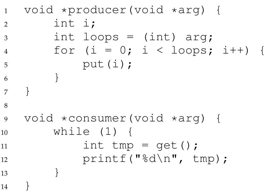 하나 이상의 생산자 스레드, 그리고 소비자 스레드가 있다고 가정해보자.