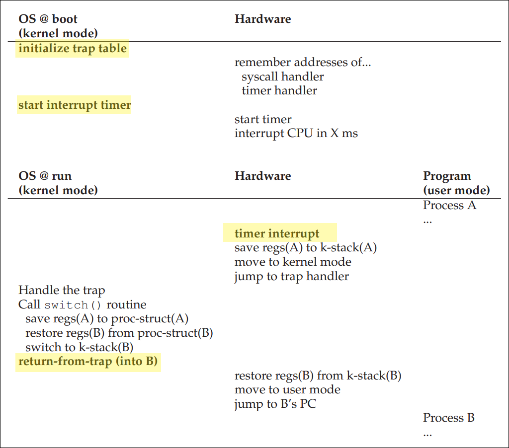 타이머가 시작됐다는 것은, 더이상 OS가 실행 주도권에 대한 걱정을 하지 않아도 된다는 것과 같다.