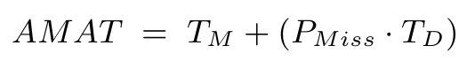 캐시 미스와 히트 횟수를 알면 평균 메모리 접근 시간(AMAT)을 계산할 수 있게 되는데, 다음과 같은 형태를 띈다.
