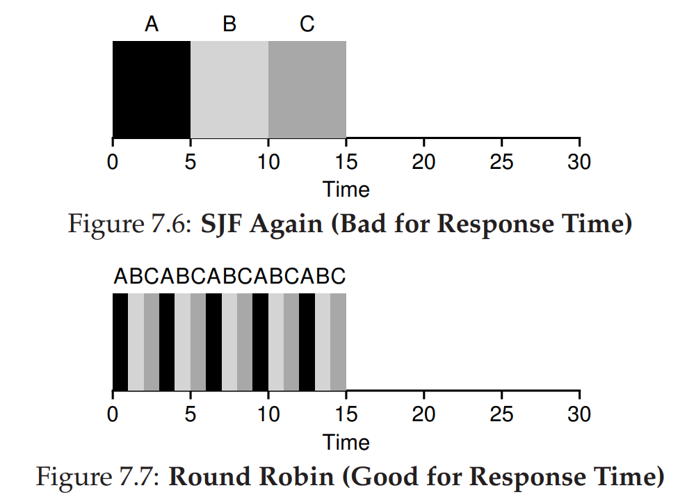 time slice가 짧다면 응답 시간은 향상되지만, context switching의 오버헤드가 발목을 잡게 된다.