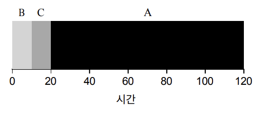 B, C가 더 늦게 전달됐기 때문에, B, C가 더 짧은 작업임에도 불구하고 A가 끝나길 기다릴 수 밖에 없다.