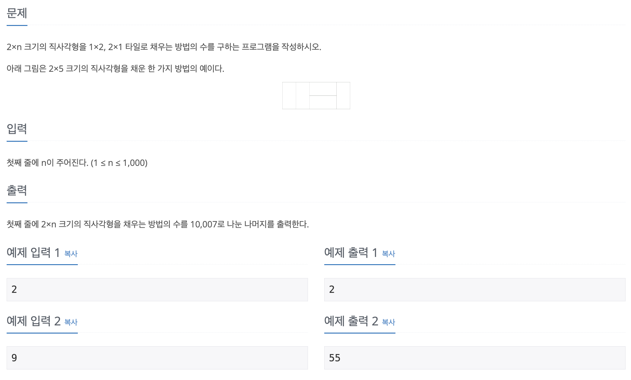 처음 문제를 시도할 때 10007 이라는 수에 대해 궁금했었는데 메모리 초과, 오버플로우 방지를 위한 것임을 알았으니 다음 문제를 풀 때 이러한 경우를 마주한다면 좀 더 빠르게 접근할 수 있을 것 같다 !