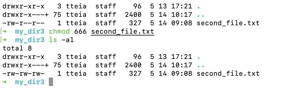 # 권한은 세 파트로 구성되어 있고(user:group:others), 각 권한은 r(4)w(2)x(1)로 이루어져있음. 그룹 >> 만든 사람