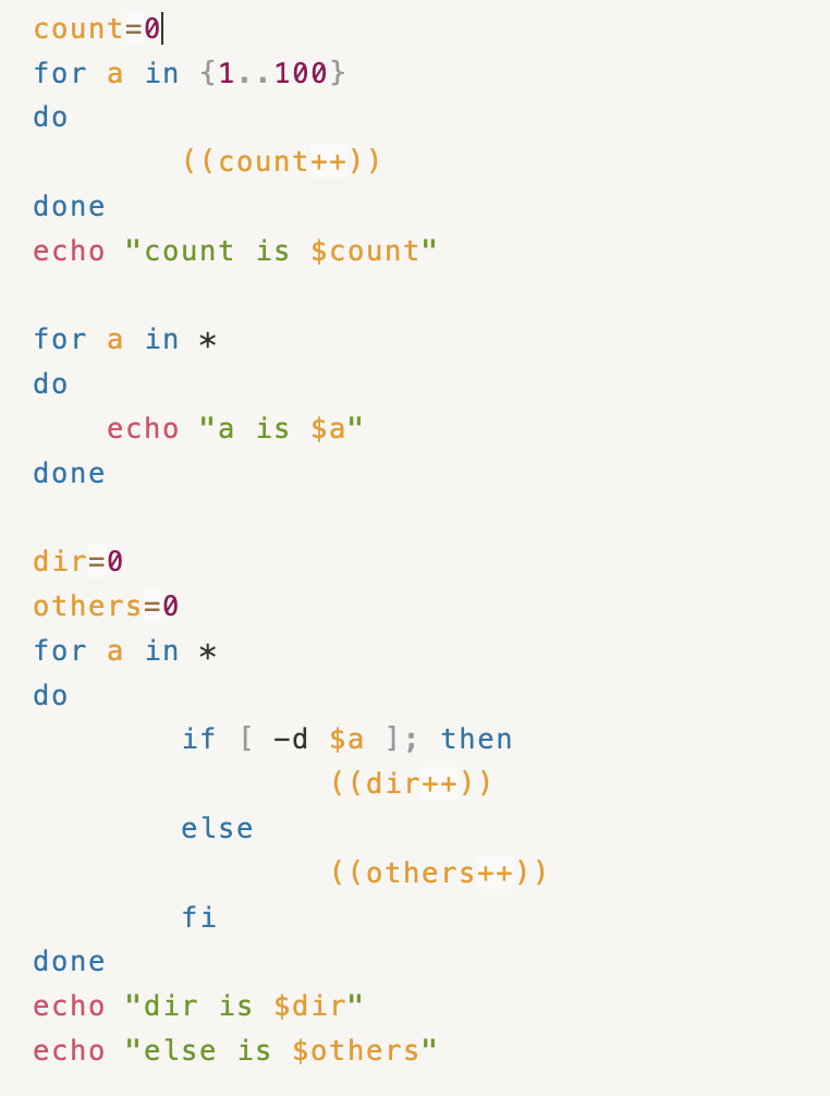 for 변수 in 항목들; do
