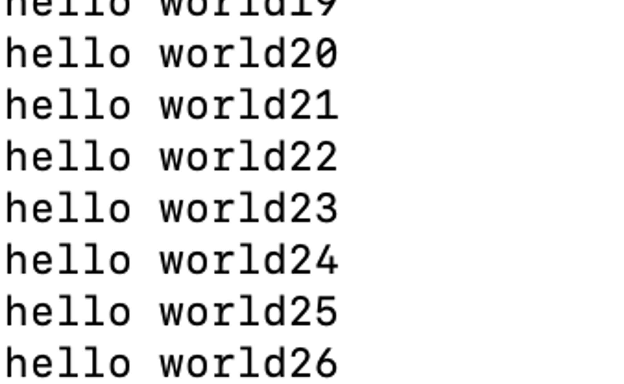 2. 해당 파일에 hello world1 …. hello world100 까지 입력실습 결과