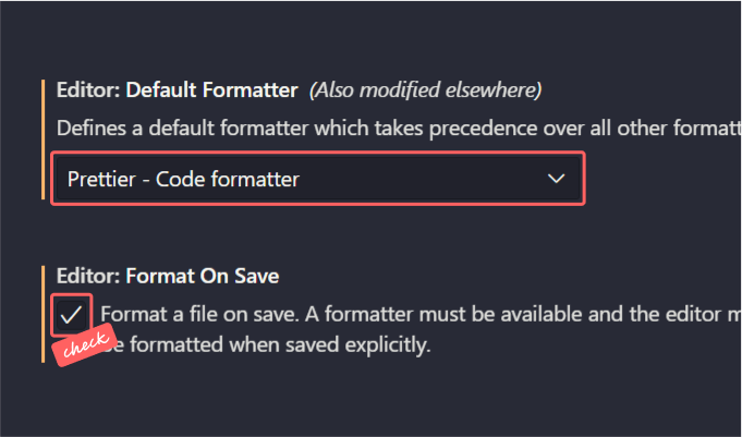 Default Formatter → Prettier - Code formatter로 변경Format On save에 ✅ 체크 표시하기