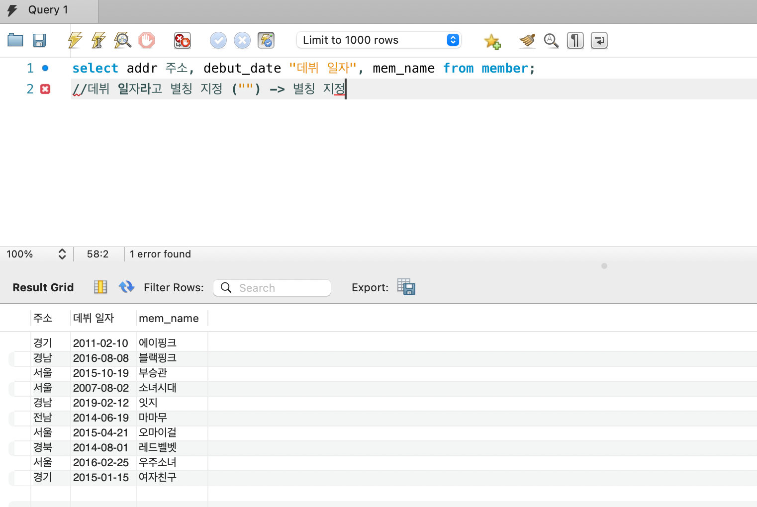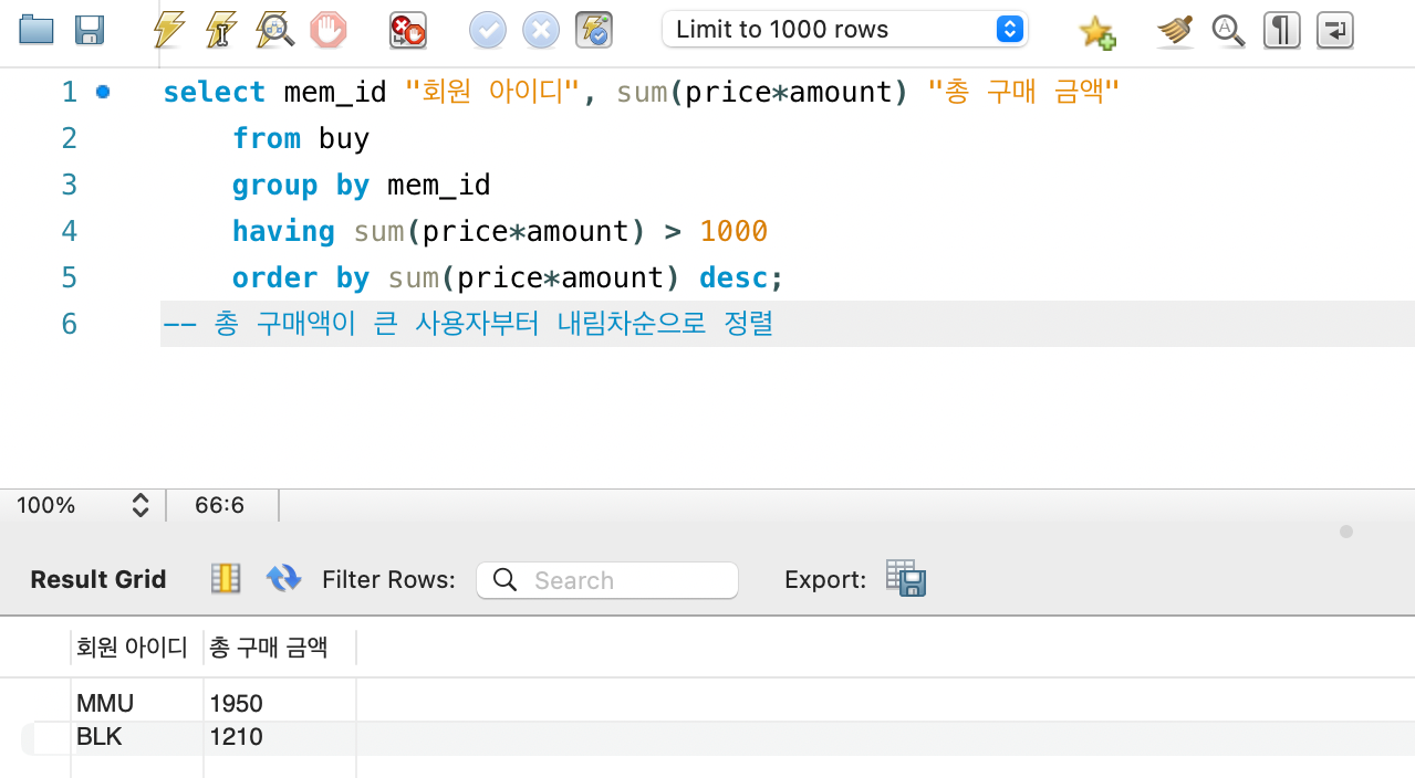 ๋ณ์นญ ์ง์ ("") + GROUP BY + HAVING