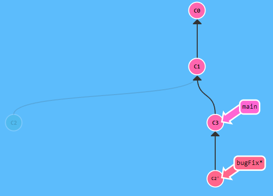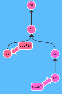 bugFix로 이동한 후 rebasegit checkout bugFix