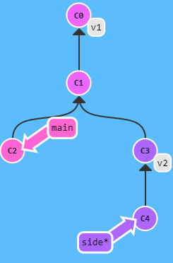 git describe main; git describe side;