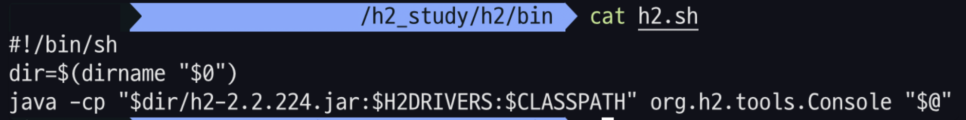 H2 > bin 으로 이동한 후, 터미널에서 다음 명령어를 실행합니다.