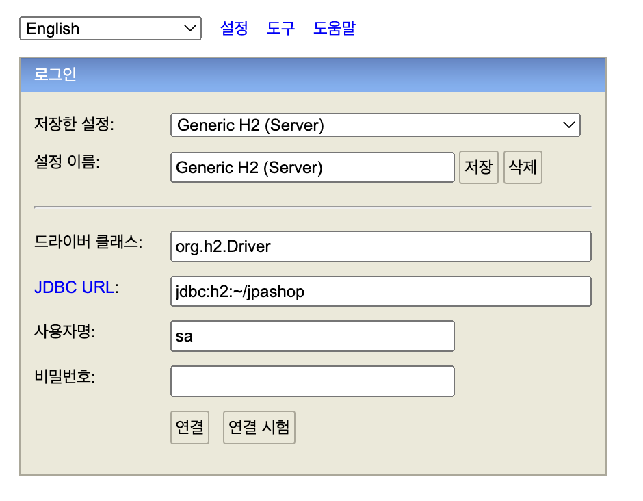 jdbc:h2:~/jpashop
