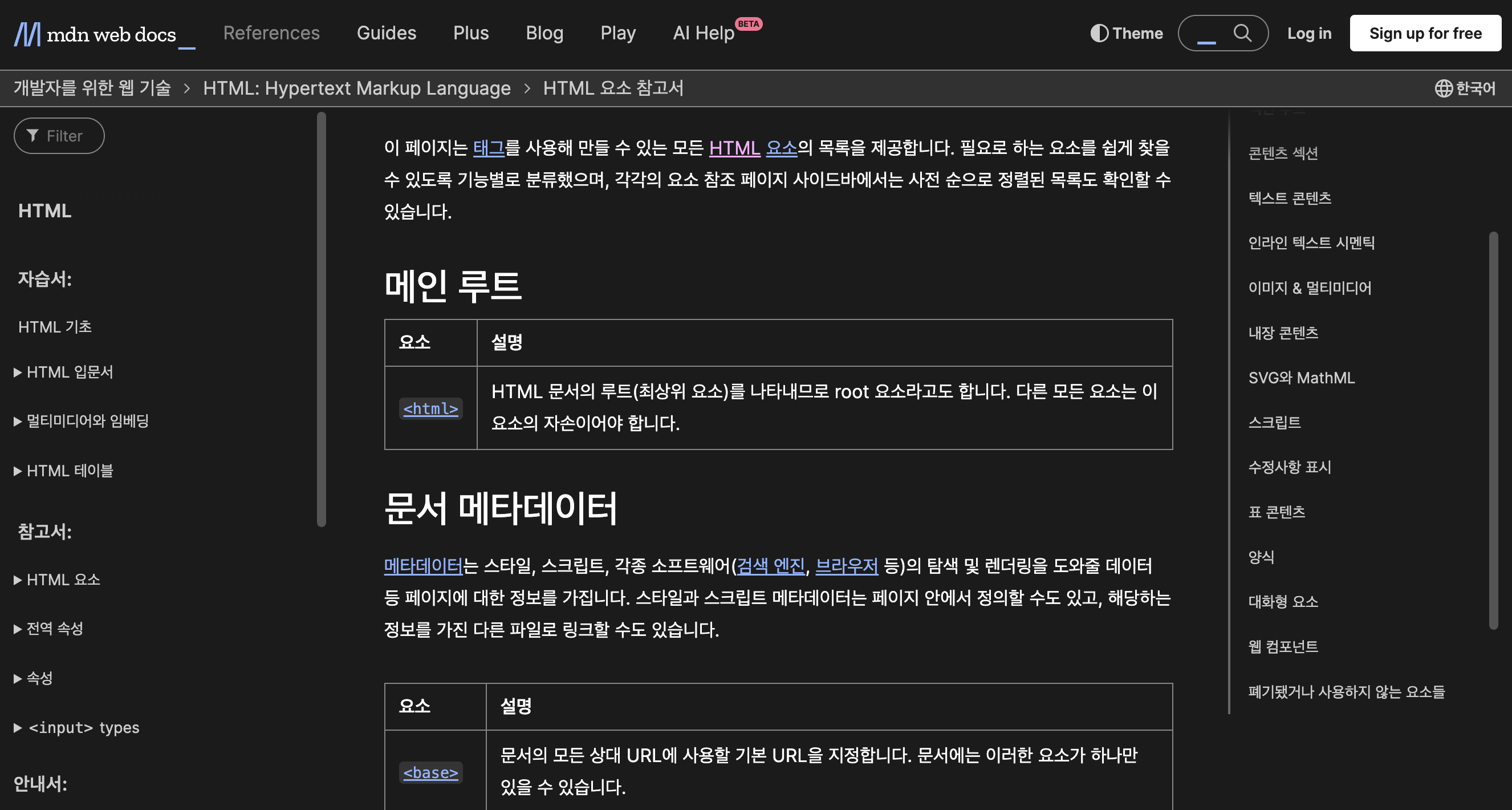 HTML elements reference - 태그 문서