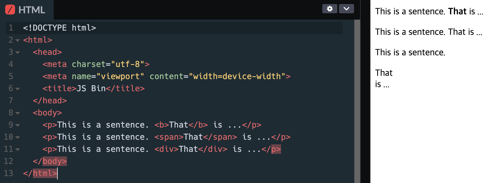 <p>This is a sentence. <b>That</b> is ...</p>