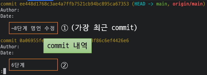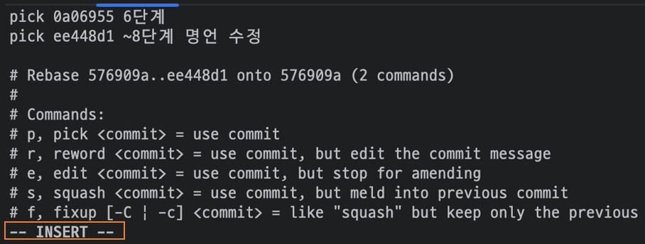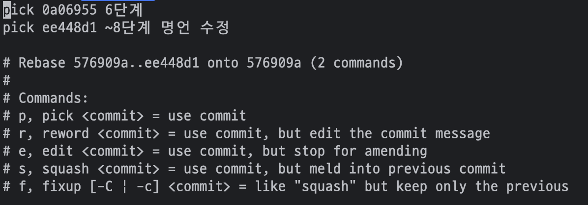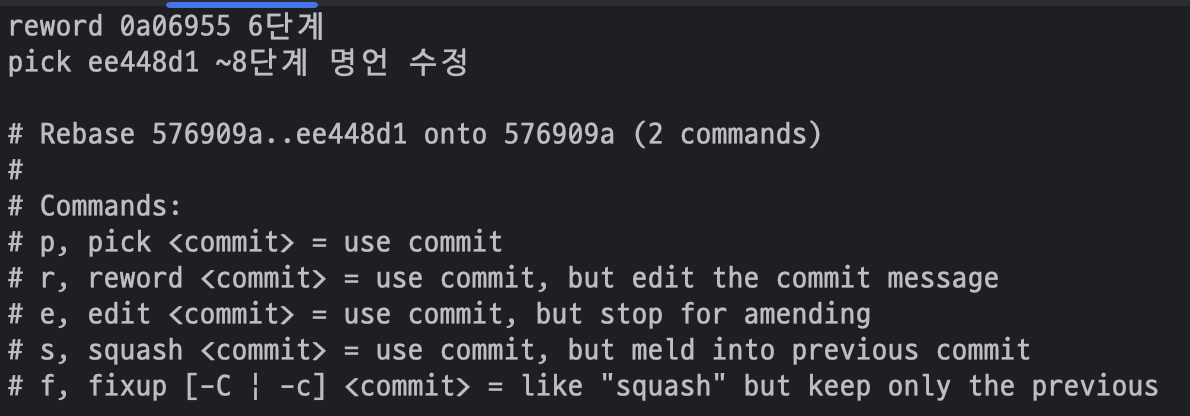 git rebase -i HEAD~커밋 수정 위치 // 해당 커밋까지 보여준다.