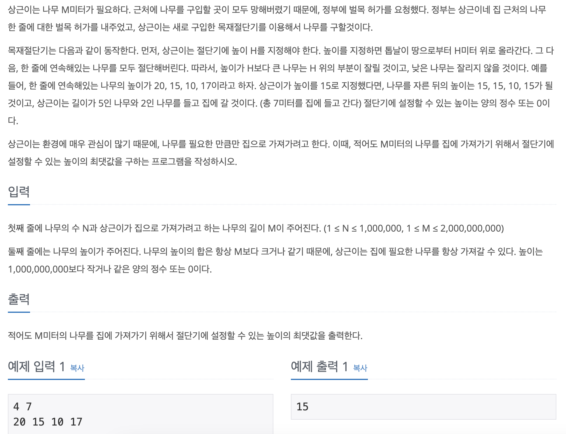 저 입력값이 너무 크면 이진탐색을 생각해볼 것