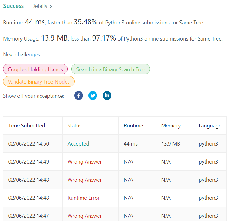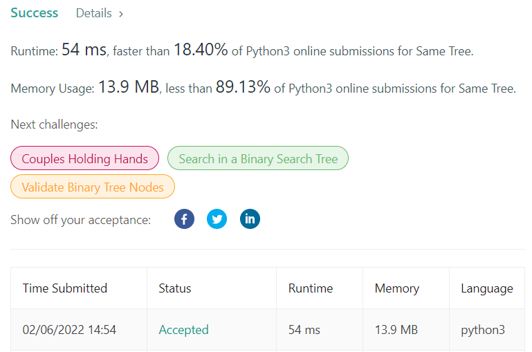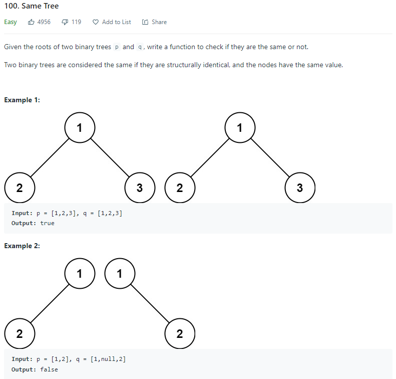 def isSameTree(self, p: Optional[TreeNode], q: Optional[TreeNode]) -> bool: