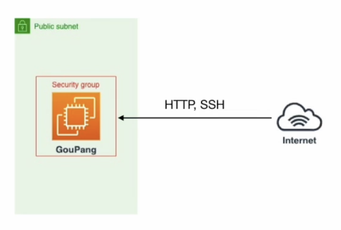 GouPang이라는 서비스를 운영중인 경우, 퍼블릭 서브넷에 존재한다면 모든 트래픽이 접근이 가능해지며 Ddos나 트래픽 변조 공격에서 위험하다.