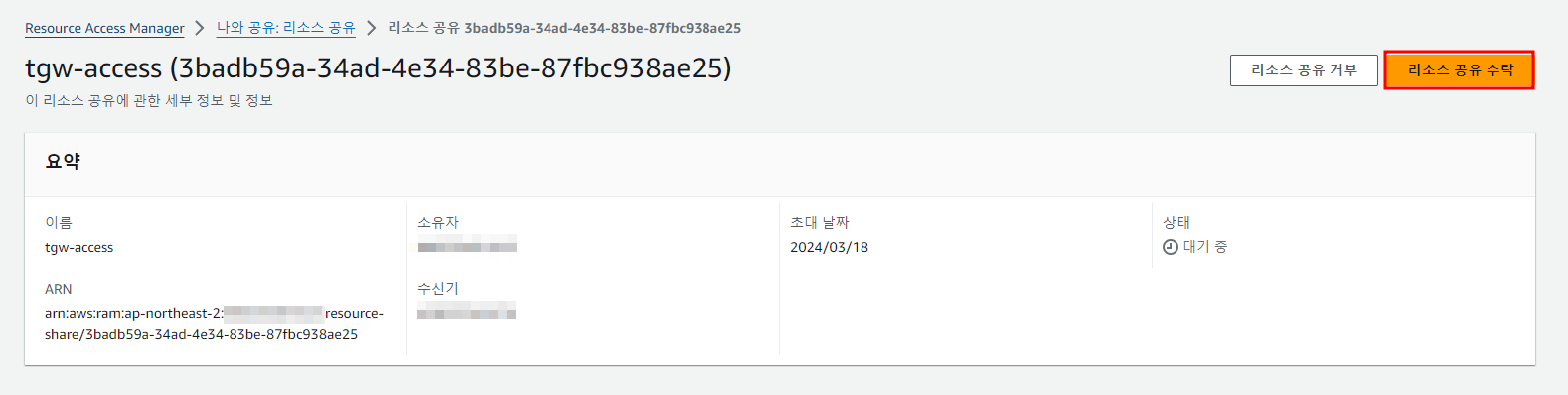 공유 이후 공유 대상 계정에서 "꼭" 수락이 필요하다