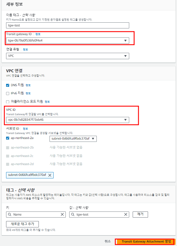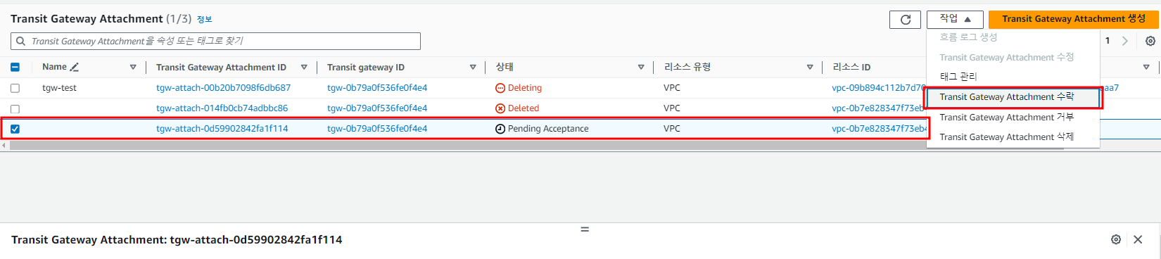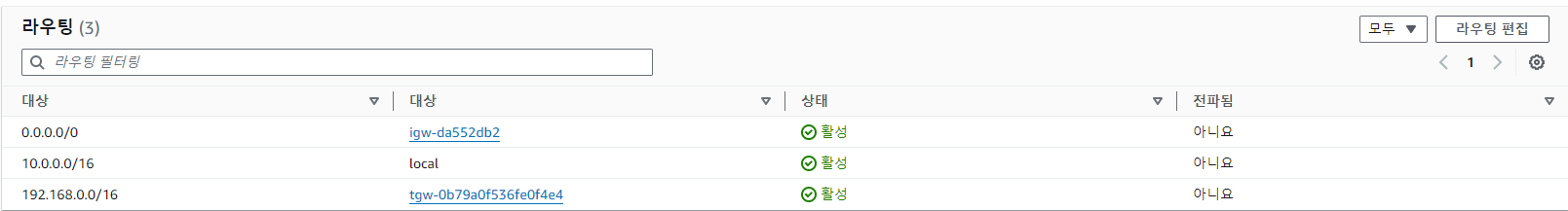 ※ Transit GateWay 라우팅은 Attachment가 생성되며 자동 생성된다.