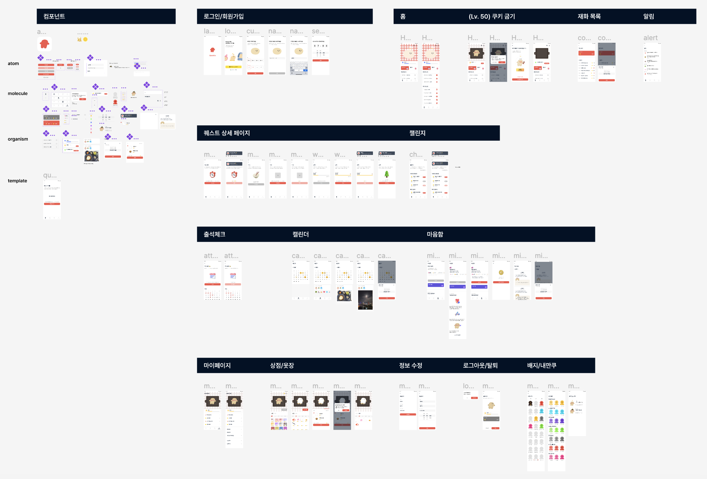 웹 앱 서비스를 위해 PWA 방식을 택했다. 팀원 모두 익숙한 리액트를 그대로 사용할 수 있다는 점이 가장 큰 메리트였다. 이번 프로젝트는 캐릭터 육성 과정을 통해 사용자의 마음 건강을 케어해주는 주제였다. 귀여운 캐릭터가 꼭 필요했기 때문에 캐릭터 디자인과 GUI 디자인의 결을 맞추기 위해 실력 발휘를 조금 해줬다. ^^*