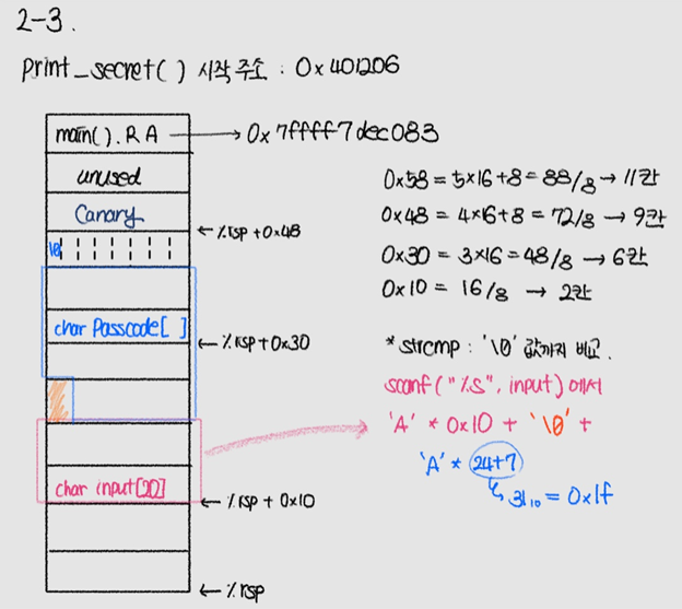 -> %rsp로부터 10번째 칸에서 canary가 도입되어 10번째 주소가 바뀌어야 한다.