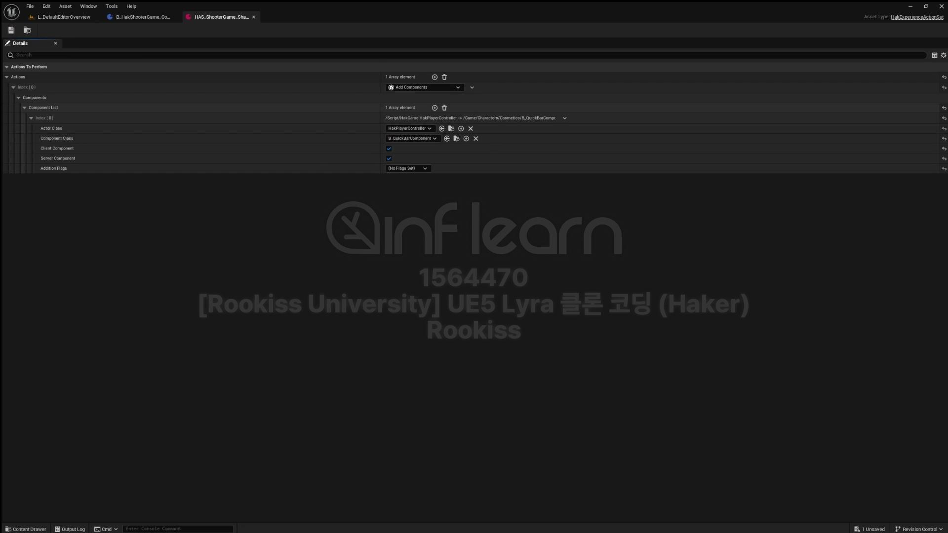 ExperienceActionSet 만들어서 또 AddComponent로 컨트롤러에 B_QuickBarComponent 부착