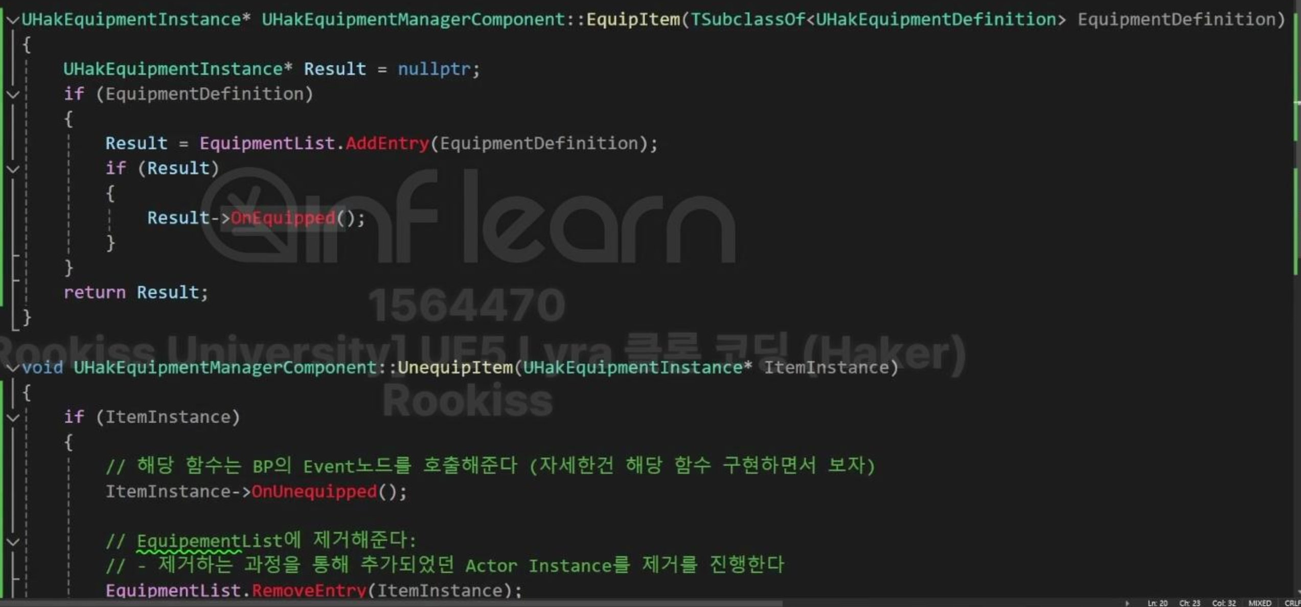 EquipmentInstnace를 EquipmentList에 추가/삭제하면서 EquiopmentInstnace에서 OnEquipped/OnUnequipped를 호출하고 있다