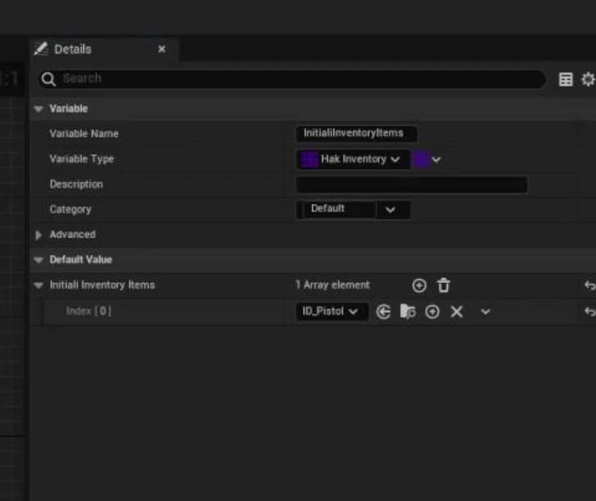 InitialInventoryItems: 미리 만들어둔 ItemDefinition 리스트
