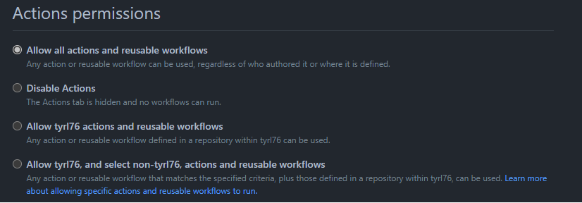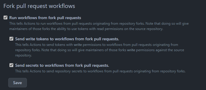 그렇지만, 위와 같은 이유가 있더라도 상황에 따라 유용할 수 있는 기능이므로 Github는 Action Setting을 통해 길을 열어두었습니다.